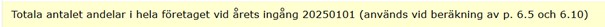 Här beräknas företagets lönebaserade utrymme enligt punkt 6.4 multiplicerat med ”Antal ägda andelar under hela året” delat med ”Totala antalet andelar (företagets)" som du fyllt i under avsnittet "Allmänna uppgifter". Om du inte anskaffat några aktier under 2024 överförs beloppet automatiskt till punkt 6.11.